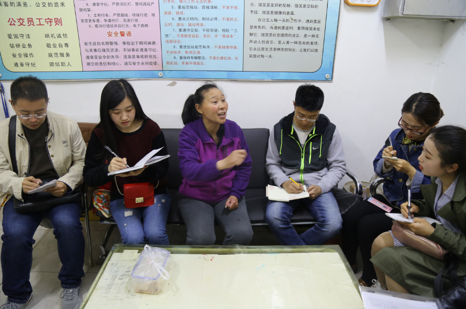 孫師傅發(fā)車了,通訊員們在跟車采訪環(huán)節(jié),仔細(xì)觀察、記錄孫師傅在行車中的“一舉一動”,尋找采訪細(xì)節(jié)。在孫師傅休停時(shí),大家紛紛拿出相機(jī)、手機(jī),切磋拍照經(jīng)驗(yàn)。為達(dá)到培訓(xùn)目的,采訪前要求通訊員們通過認(rèn)真思考,提前擬定好了采訪提綱,現(xiàn)場采訪環(huán)節(jié),通訊員們積極踴躍根據(jù)自己擬定好的問題對孫師傅提問,并認(rèn)真記錄。通訊員“現(xiàn)場練兵”在輕松愉快的氣氛中結(jié)束了,大家表示這種培訓(xùn)形式有趣有收獲。