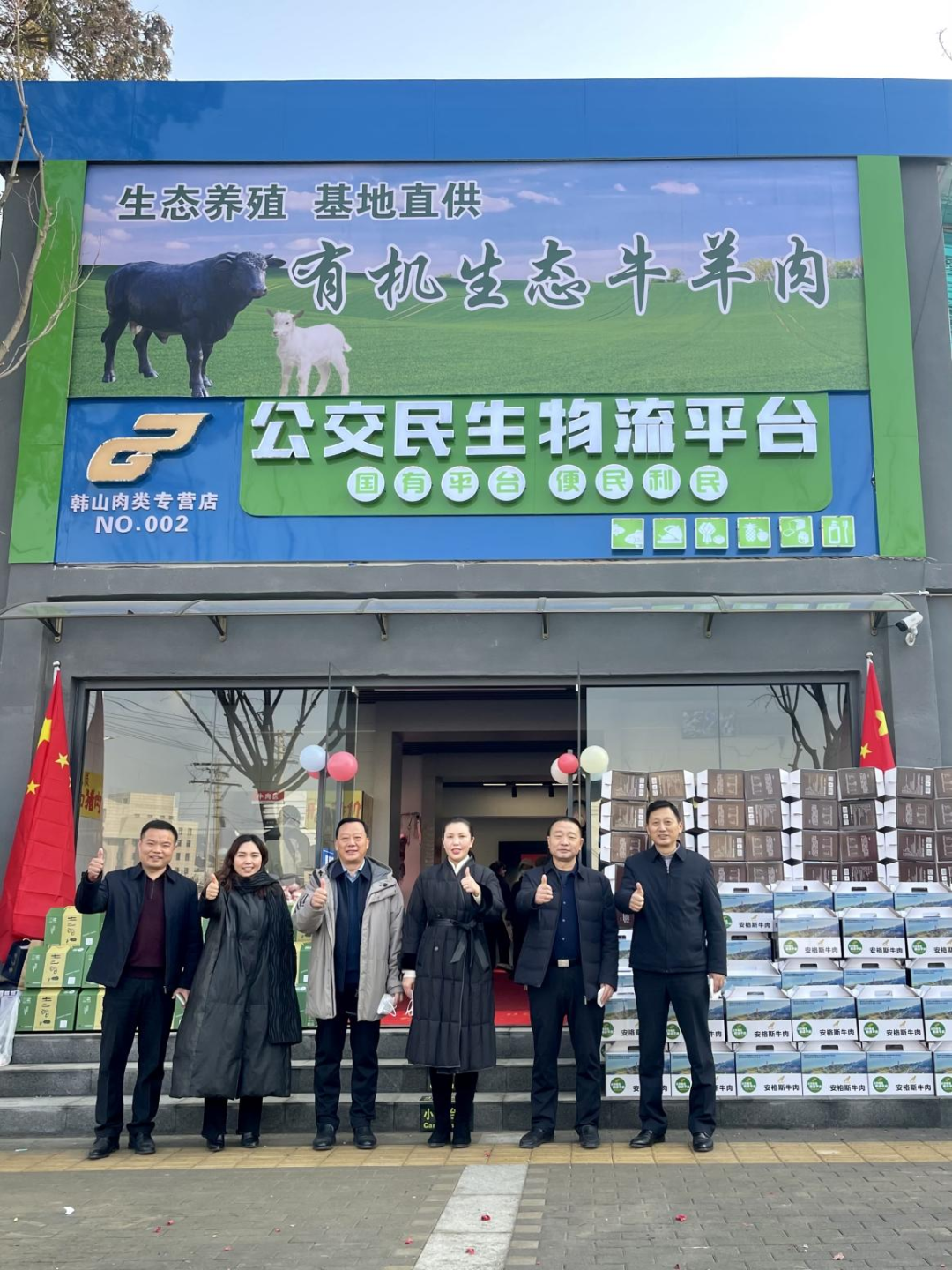 為進一步保障周邊居民生活需求,方便廣大市民采購生鮮肉品,1月8日上午,徐州公交民生物流平臺(韓山肉類專營店)正式開業(yè)。開業(yè)當天,公交集團黨委副書記、總經(jīng)理袁夫松,黨委副書記、紀委書記、工會主席竇同銀,宿州草源牧業(yè)集團公司董事長馬良兵,徐州土巴豬生態(tài)農(nóng)業(yè)有限公司總經(jīng)理鄭紅梅一行到店祝賀。