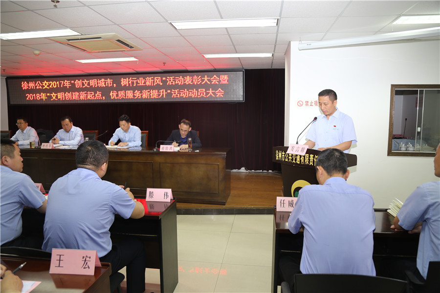 最后,公司董事長(zhǎng)、總經(jīng)理杜紅軍作重要講話,對(duì)2017年文明城市創(chuàng)建工作進(jìn)行了總結(jié),對(duì)公交廣大干部員工在創(chuàng)建中的辛勤付出和取得的成績(jī)給予了充分肯定。同時(shí),分析了目前的創(chuàng)建形勢(shì),提出了新時(shí)期工作要求。他強(qiáng)調(diào):各單位要不斷總結(jié)創(chuàng)建經(jīng)驗(yàn),用制度鞏固好已有的創(chuàng)建成果;要營(yíng)造良好氛圍,用核心價(jià)值觀帶動(dòng)行業(yè)文明新風(fēng);要深化創(chuàng)建內(nèi)涵,用優(yōu)質(zhì)服務(wù)打造公交文明新亮點(diǎn)。要以全國(guó)文明城市創(chuàng)建成功為契機(jī),以常態(tài)長(zhǎng)效為目標(biāo),努力打造溫馨公交、安全公交、便捷公交、智慧公交,以高質(zhì)量服務(wù),實(shí)現(xiàn)群眾滿意;以高標(biāo)準(zhǔn)要求,優(yōu)化公交形象,在流動(dòng)的車廂傳播精神文明,譜寫出新時(shí)期公交行業(yè)文明創(chuàng)建的動(dòng)人樂章,為加快建設(shè)“強(qiáng)富美高”新徐州交出公交人的滿意答卷!