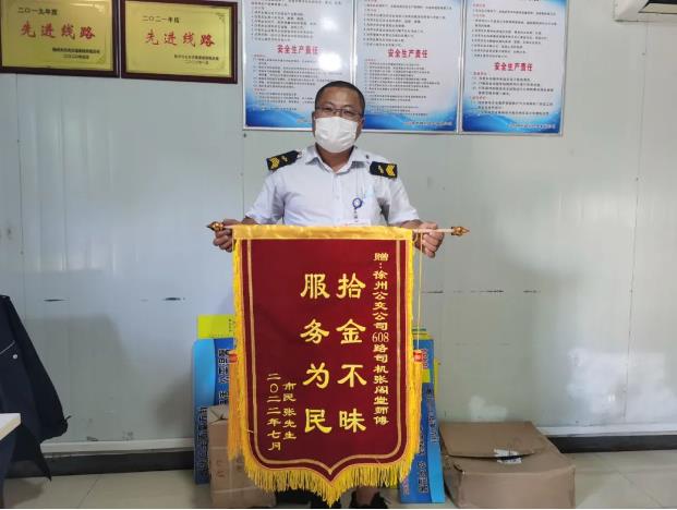 幾日后,張先生拿寫著“拾金不昧,服務(wù)為民”的錦旗來到調(diào)度室,表達(dá)了對張閣堂的感謝之情。