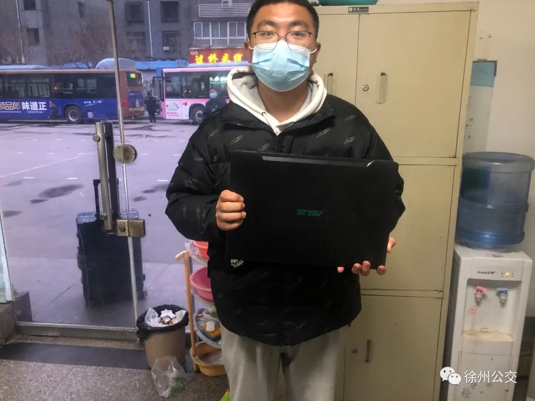 此時,專1路1696號車到達(dá)徐州站,駕駛員王強開始打掃車輛衛(wèi)生、對車廂進(jìn)行通風(fēng)、消毒,忽然,他發(fā)現(xiàn)車廂后座位上有一個藍(lán)色雙肩背包,打開發(fā)現(xiàn)里面有一臺筆記本電腦。王強隨即撥打車隊電話報備,并把背包轉(zhuǎn)交給終點站工作人員登記保管。工作人員在包里找到了失主的聯(lián)系方式,很快聯(lián)系到失主陳先生。