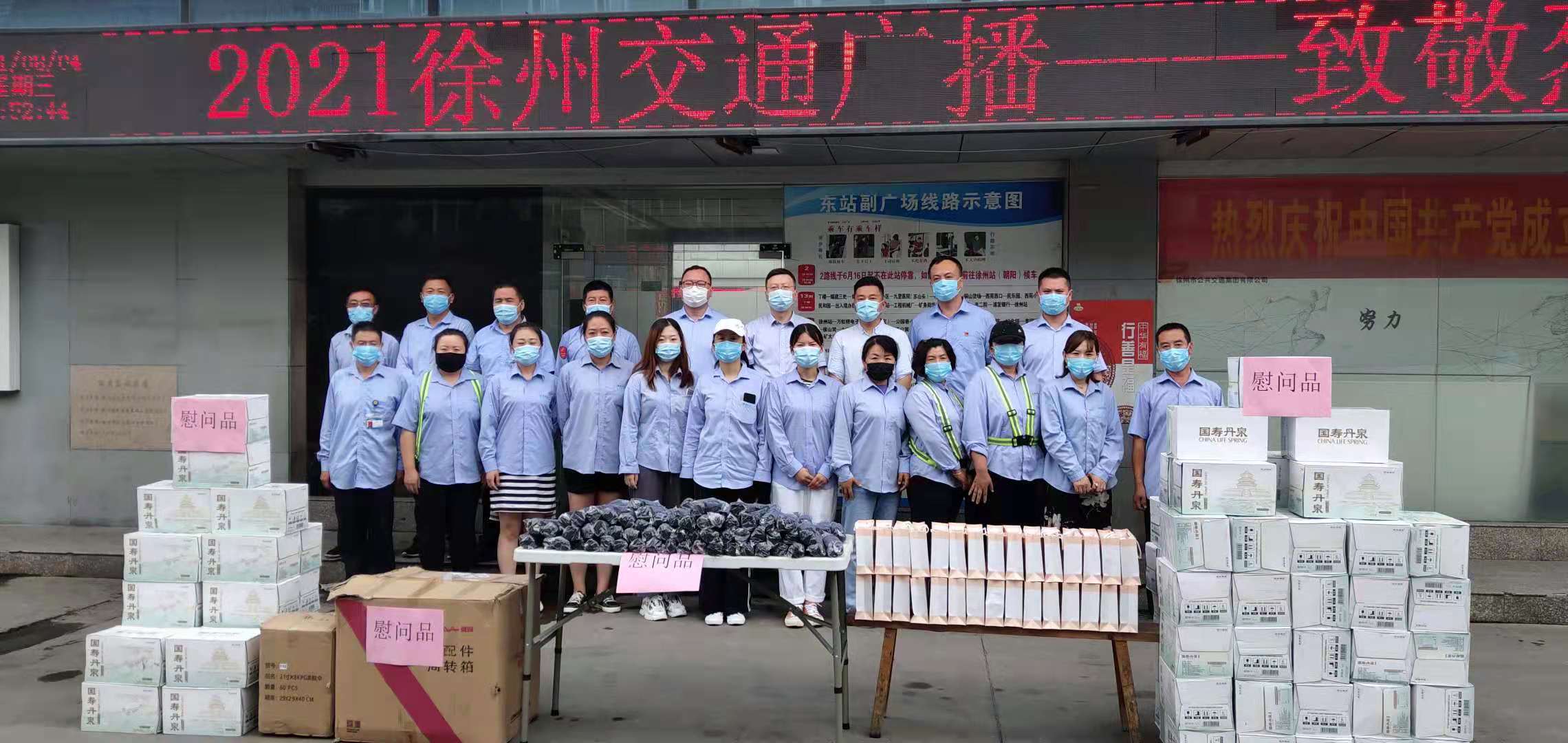 8月4日上午,徐州交通廣播副總監(jiān)吳鵬等一行,在京徐巴士公司支部書記朱祥等班子成員的陪同下,頂烈日冒酷暑來到火車站副廣場公交站,慰問了奮戰(zhàn)在高溫一線的公交員工,送來了高溫慰問品,更送來了殷殷關(guān)愛和叮嚀,讓大家感受到了夏日里的絲絲“清涼”。