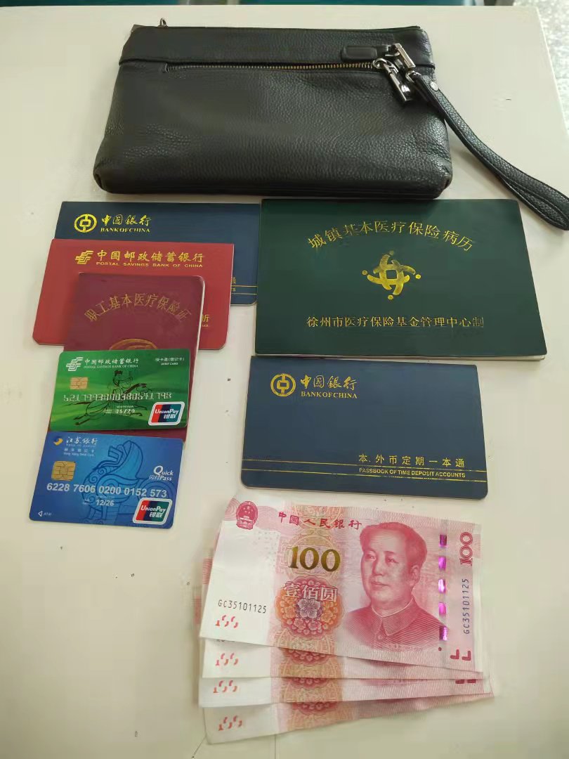 駕駛員劉連成駕車到達火車站副廣場后,在對車輛進行清掃、消殺時,發(fā)現(xiàn)了侯先生遺落在車上的包,包內有銀行卡、存折、醫(yī)保本、病例等證件和部分現(xiàn)金。劉連成想到失主丟了東西肯定著急,于是第一時間向車隊匯報,并將包交到車隊調度室。