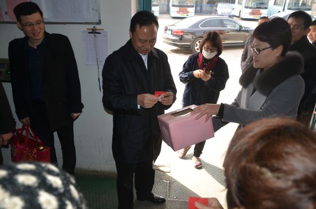 大年初一早晨,市交通運(yùn)輸局局長蔡前鋒來到公交結(jié)算中心,向公交員工拜年。蔡局長饒有興致地參加了公交結(jié)算中心舉辦的迎新春“洋洋得意”抽大獎迎禮品活動。