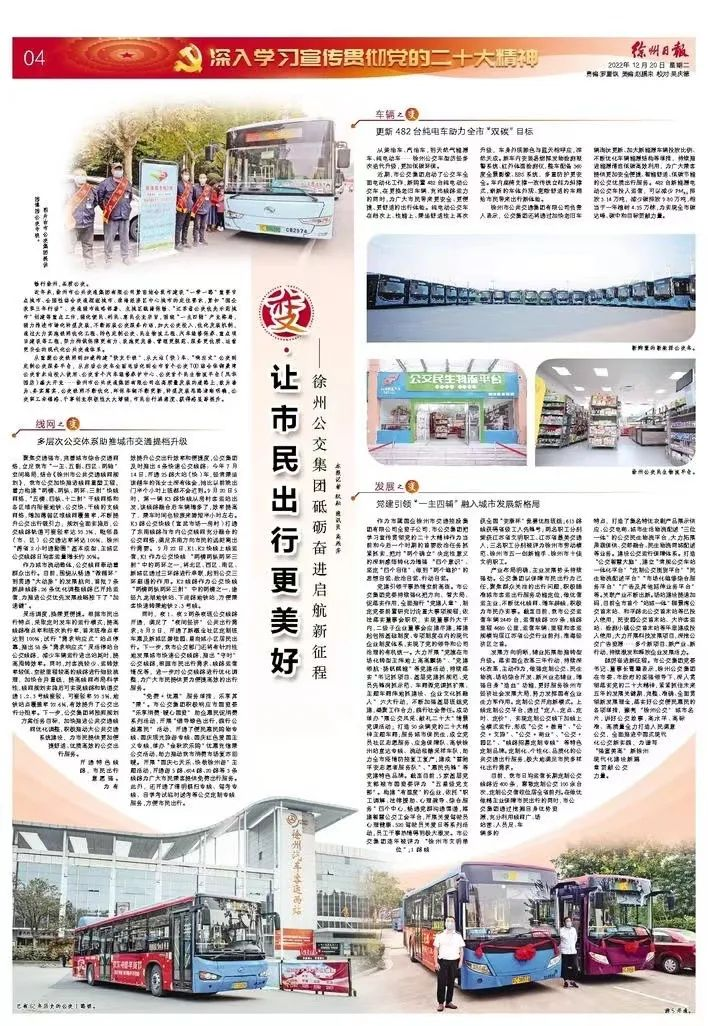 1220日《徐州日?qǐng)?bào)》04版刊登文章《變.讓市民出行更美好——徐州公交集團(tuán)砥礪奮進(jìn)啟航新征程》