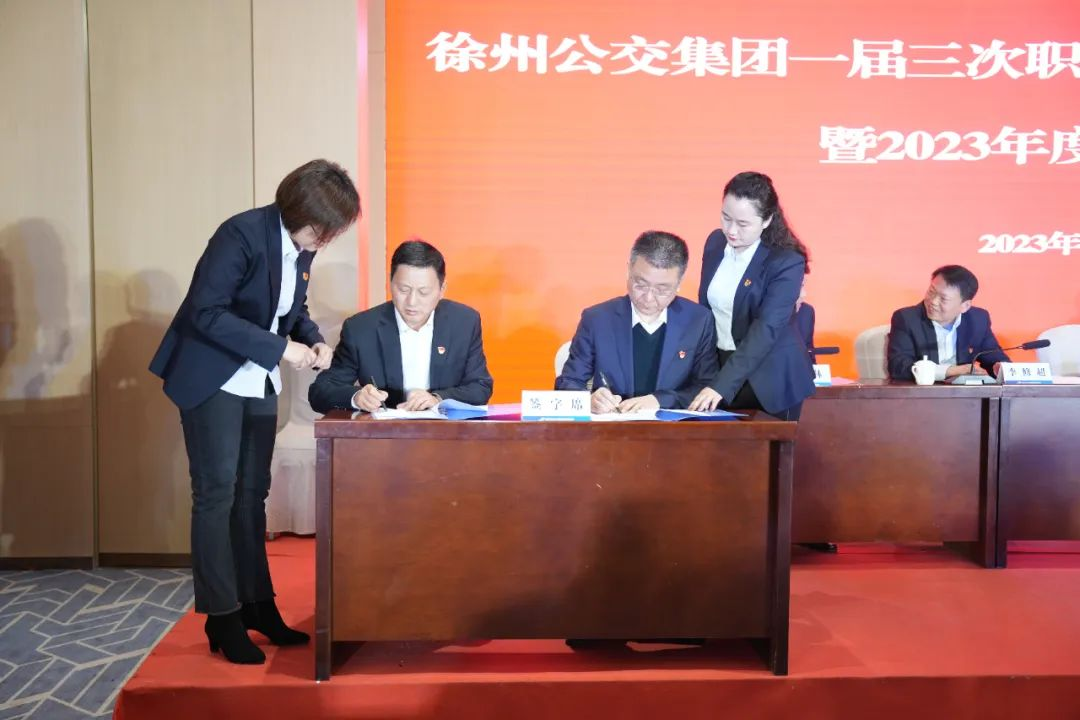 會議聽取并審議了2023年度工作報告和一屆三次職工代表大會會議決議,表決通過了5項草案,簽訂了2023年度經營目標責任書、安全目標責任書和工資專項集體合同、女職工權益保護集體協(xié)議,會議表彰了2022年度集團先進集體和先進個人,城北巴士公司、新城巴士公司、供應鏈公司、安全環(huán)保部、經營管理部等5家單位、部門作了大會交流發(fā)言。