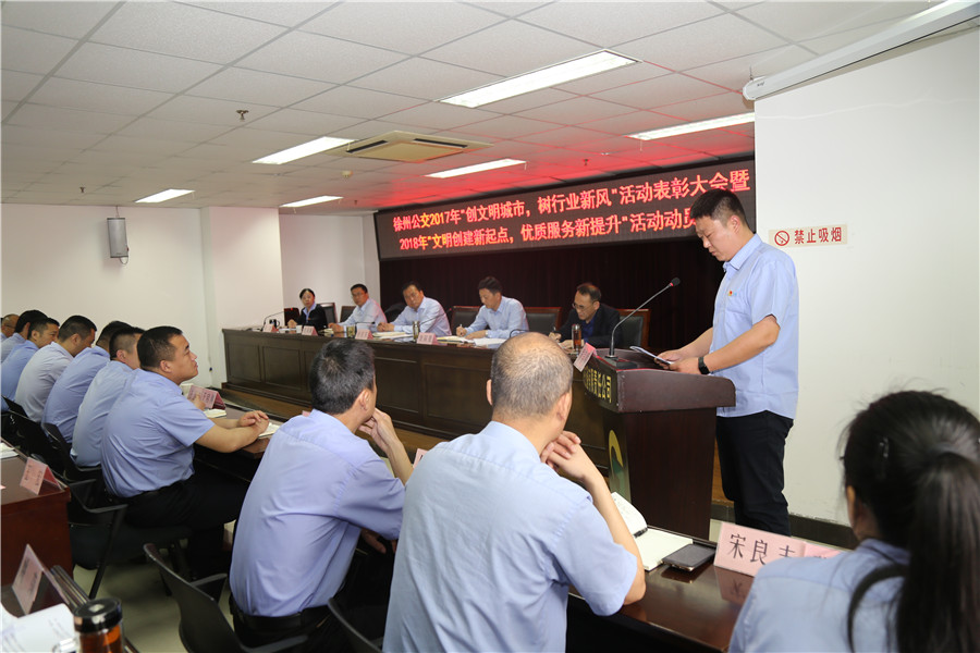 5月10日上午,有限公司召開“2017‘創(chuàng)文明城市、樹行業(yè)新風(fēng)’總結(jié)表彰暨2018‘文明創(chuàng)建新起點(diǎn),優(yōu)質(zhì)服務(wù)新提升’活動(dòng)動(dòng)員大會(huì)”,主要任務(wù)是對(duì)全公司文明城市創(chuàng)建常態(tài)長(zhǎng)效工作進(jìn)行部署,動(dòng)員全體干部員工認(rèn)清形勢(shì)、再鼓干勁,開啟文明創(chuàng)建新征程,再創(chuàng)優(yōu)質(zhì)服務(wù)新提升。公司董事長(zhǎng)、總經(jīng)理杜紅軍,工會(huì)主席竇同銀,調(diào)研員張同剛、祖伯鴻,相關(guān)部室負(fù)責(zé)人,營(yíng)運(yùn)公司經(jīng)理、書記、服務(wù)主管,車隊(duì)長(zhǎng)、先進(jìn)個(gè)人代表等87人參加了會(huì)議。